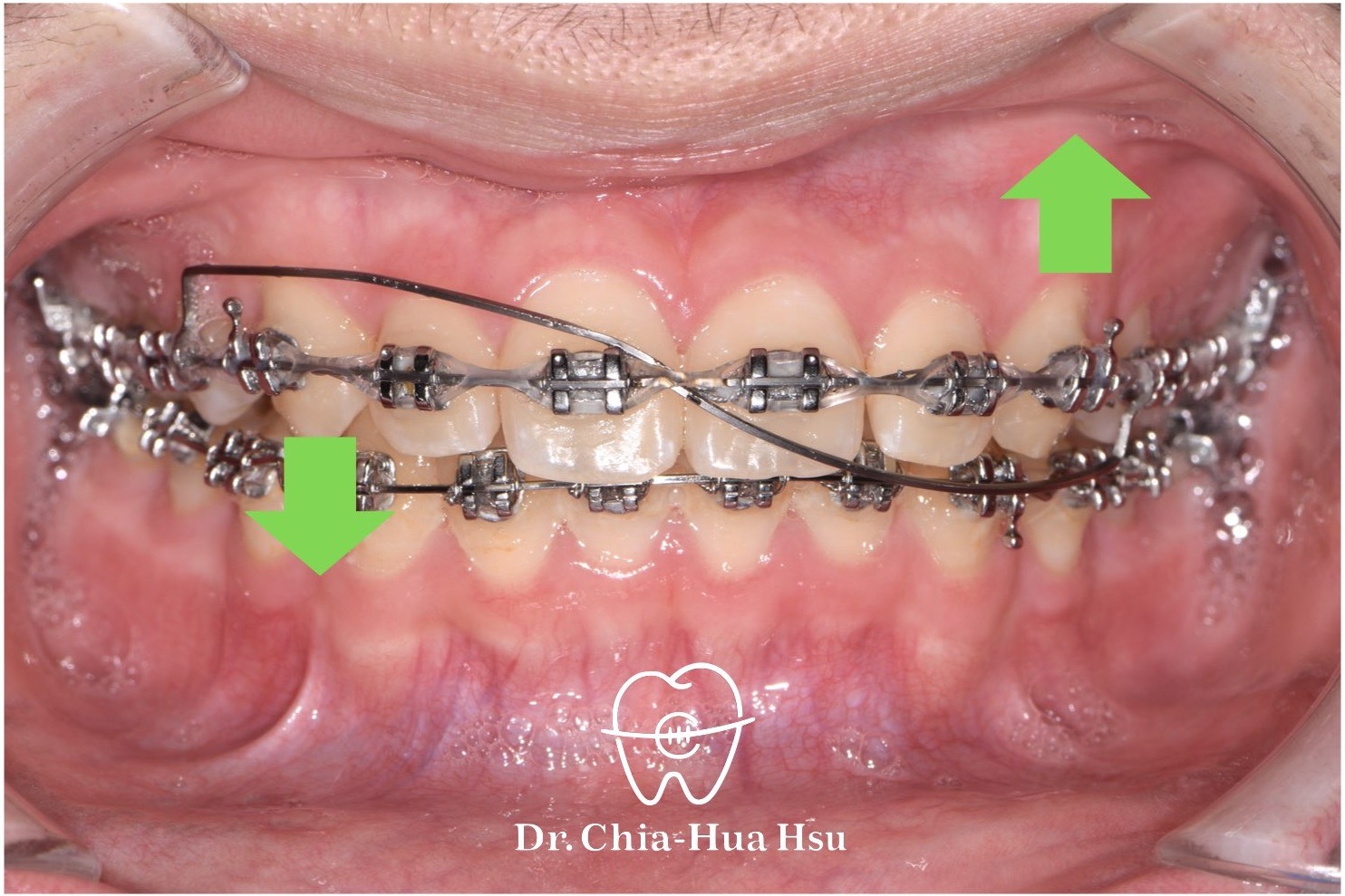 - 矯正小知識:『陰陽線』是利用特殊設計的 Beta-titanium arch wire (TMA) 線材(一條往上一條往下,像是太極的陰陽)來調整上顎咬合面的傾斜,改善患者的咬合面傾斜問題,並避免手術的痛苦。