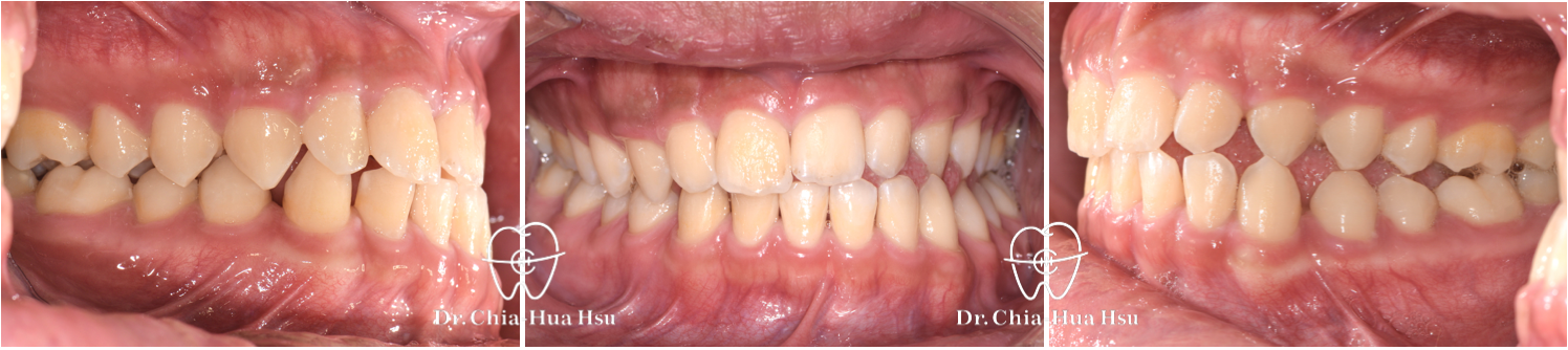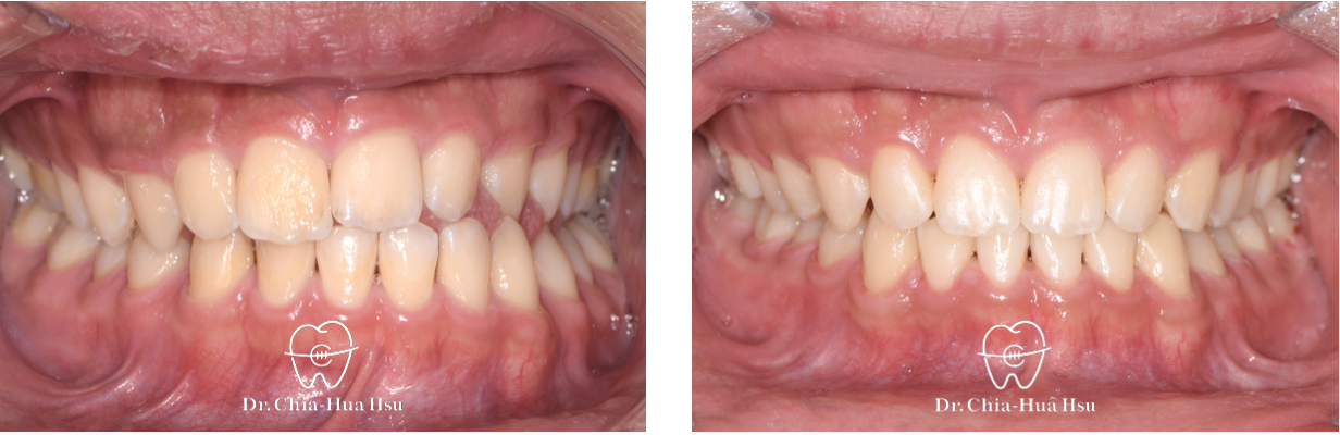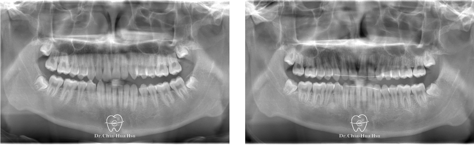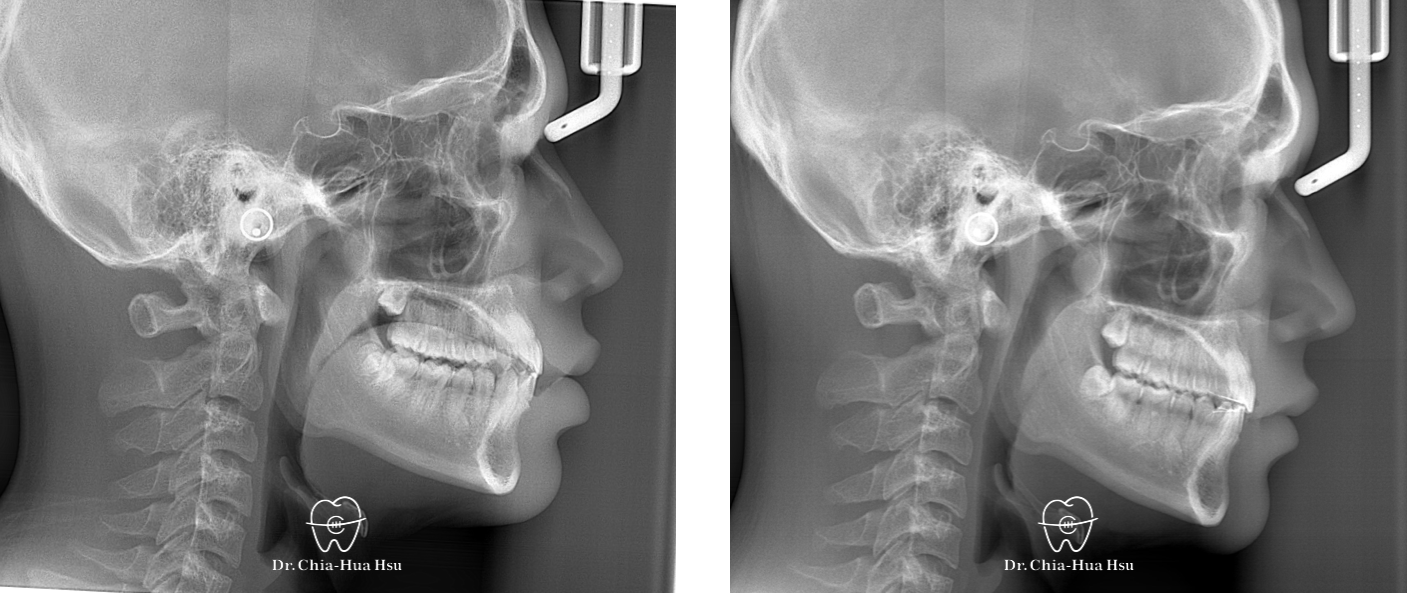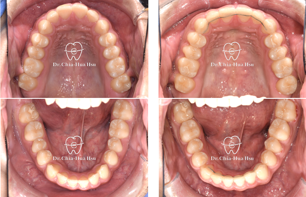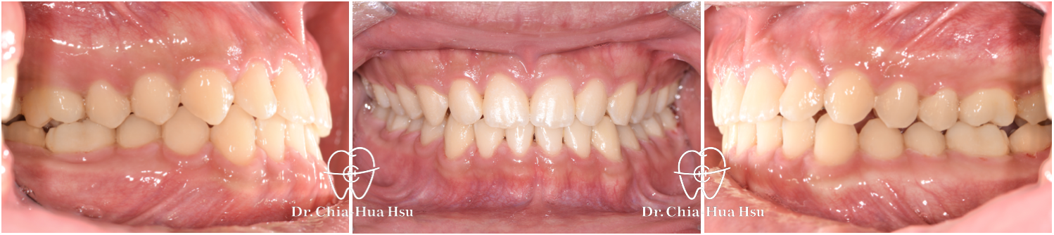 - 治療過程:治療過程使用『陰陽線』,來改善咬合平面歪斜的問題。