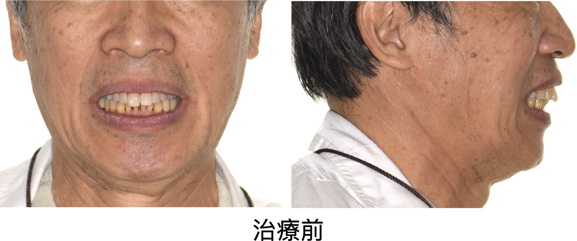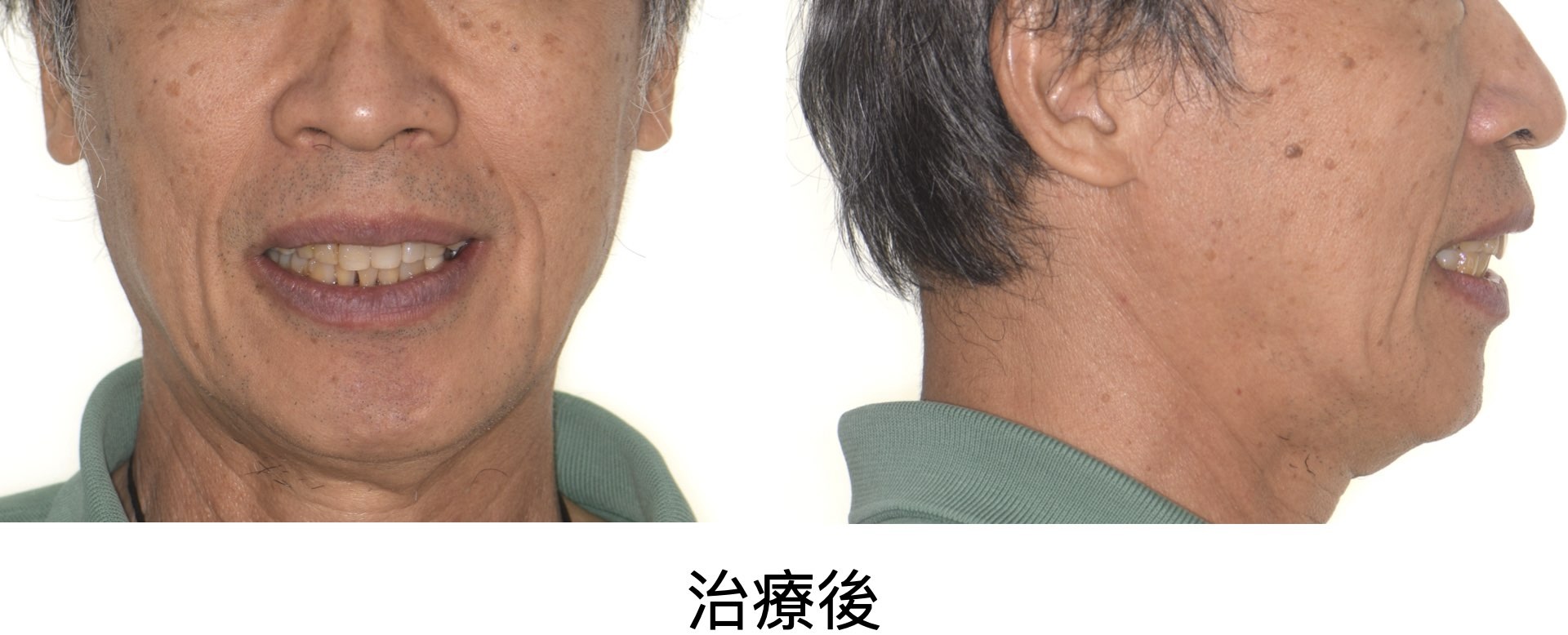 這位六十多歲的患者年輕的時候做過矯正,因為牙周病的關係導致牙齒病理性位移、暴牙,後續接受隱適美治療將牙齒排齊。