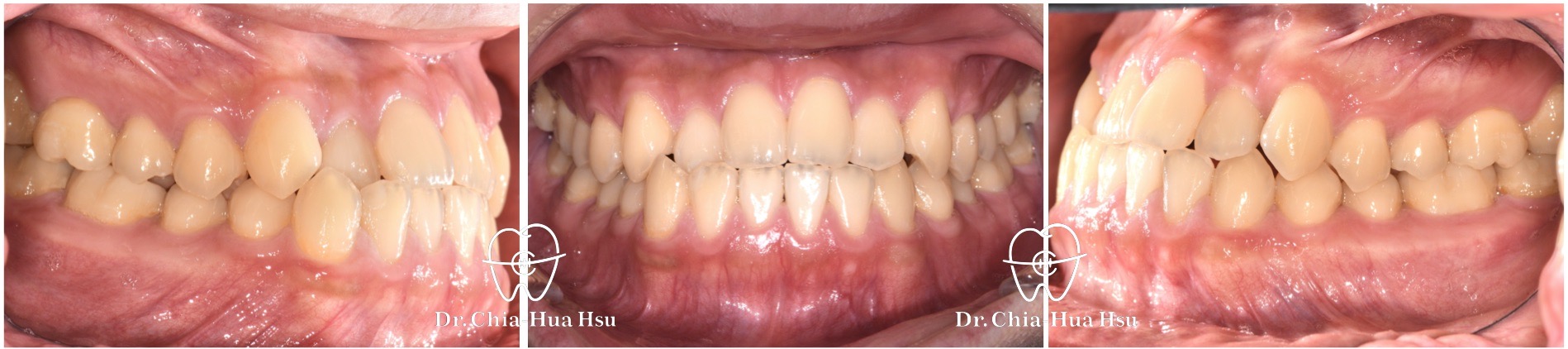 • 病患主訴:前牙錯咬、不整齊,有戽斗臉型,但不想做正顎手術。