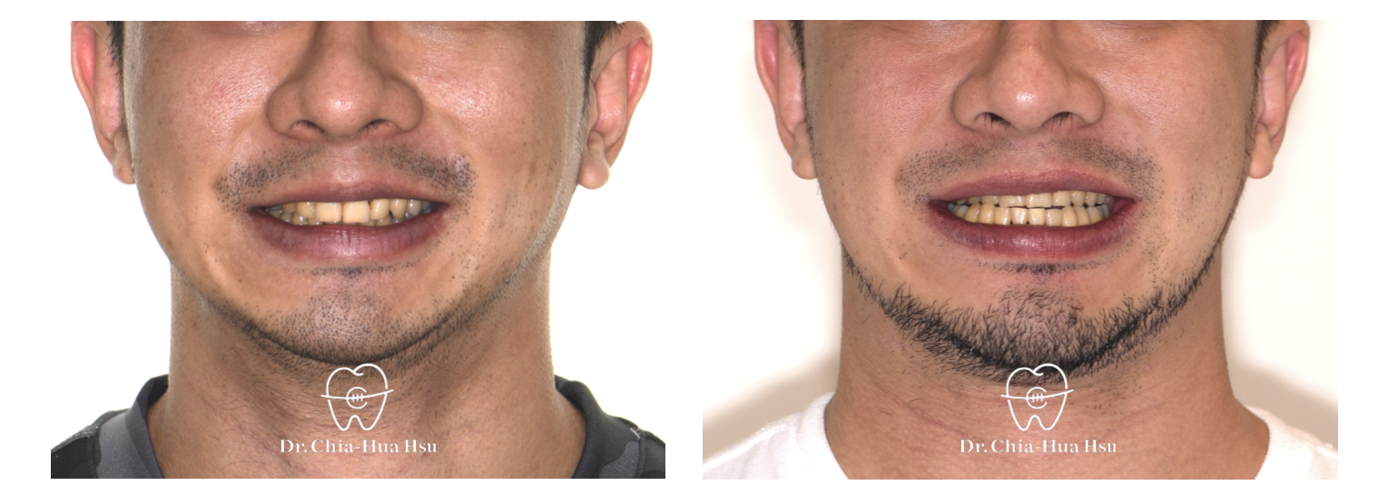 • 治療結果:齒列排齊,睡眠呼吸中止症改善許多,臉型變長、下巴輪廓也較明顯。