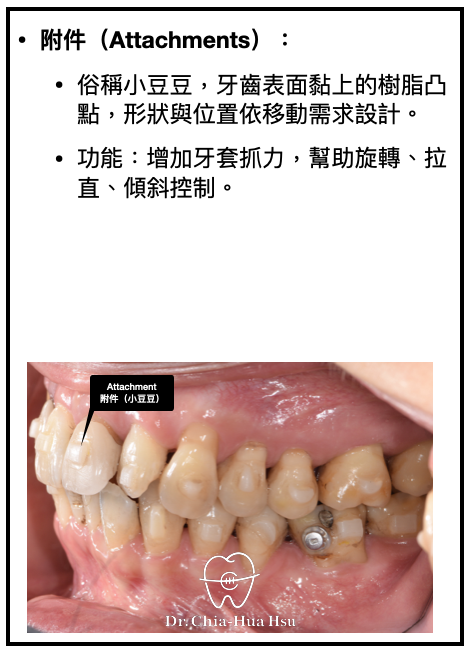 - 修正落差:因為每個人牙齒移動速度不同,或是配戴不夠確實,追加牙套可以把偏差修正回來。
