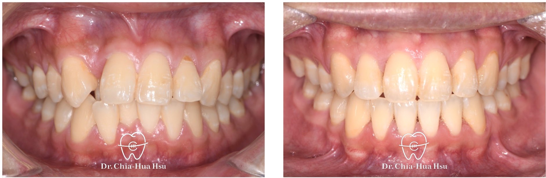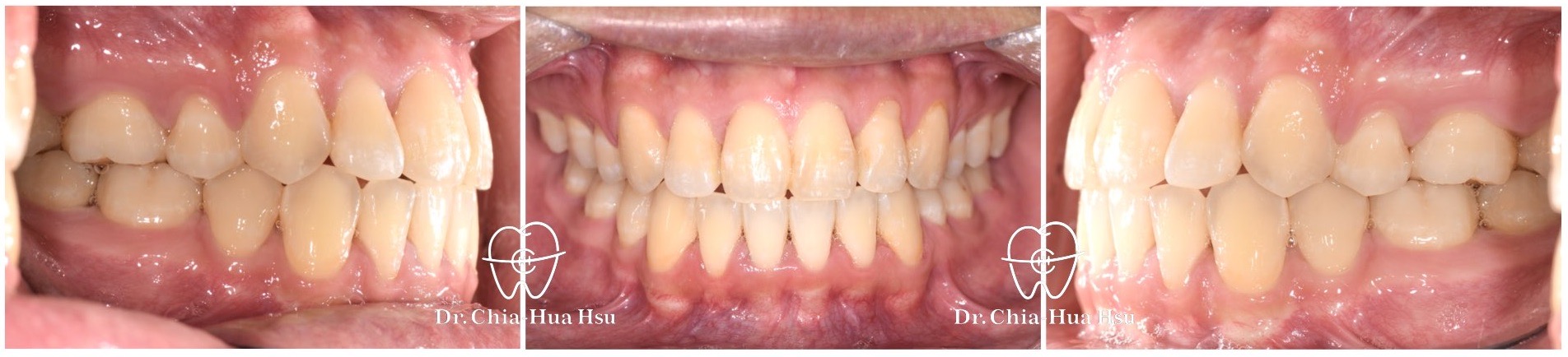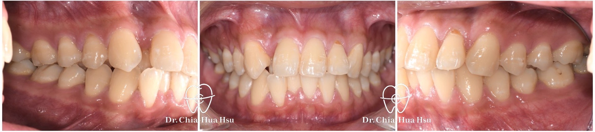 - 病患主訴:牙齒排列不整齊、側門牙躲在後面、嘴唇有點凸。